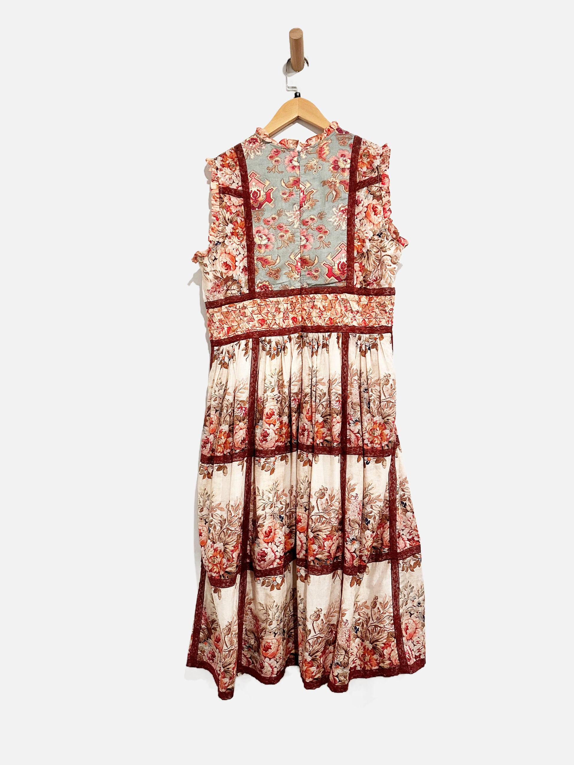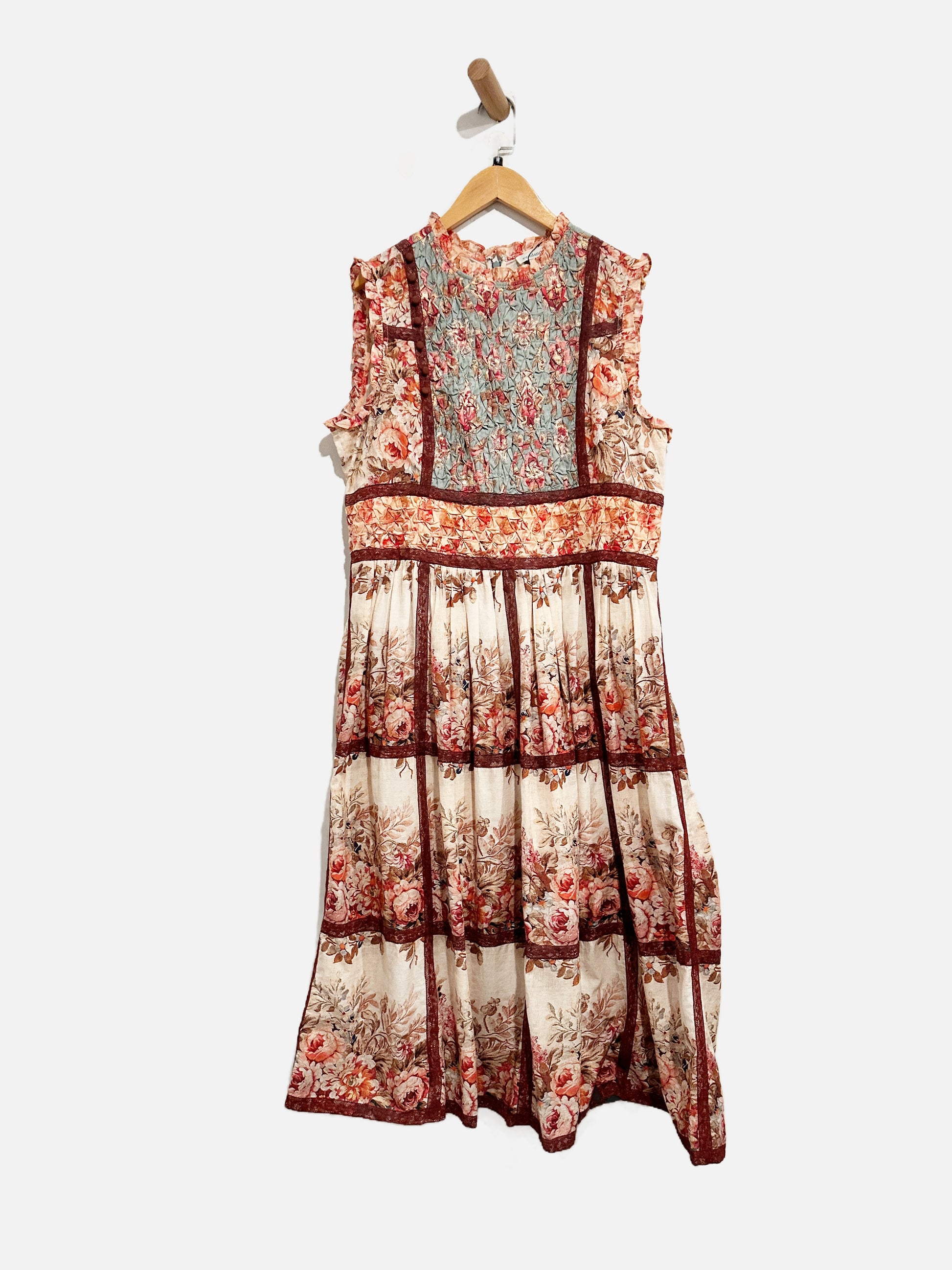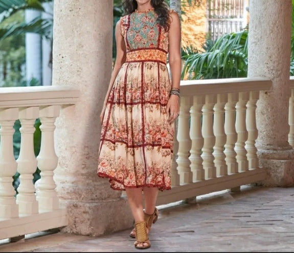 Sundance Brown Floral Lace Trim Dress - Medium