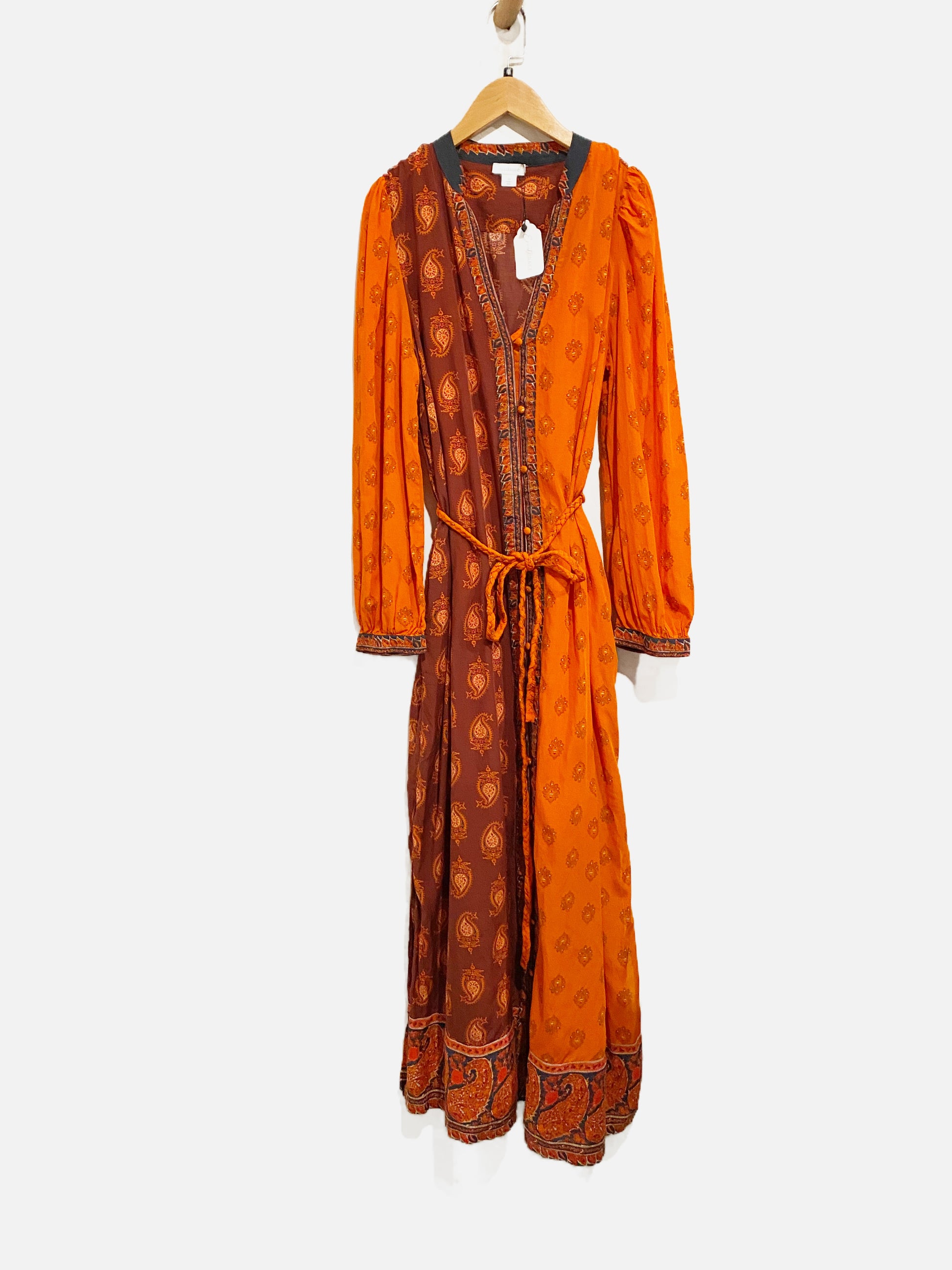 Sundance Orange & Burgundy Paisley Maxi Dress - M