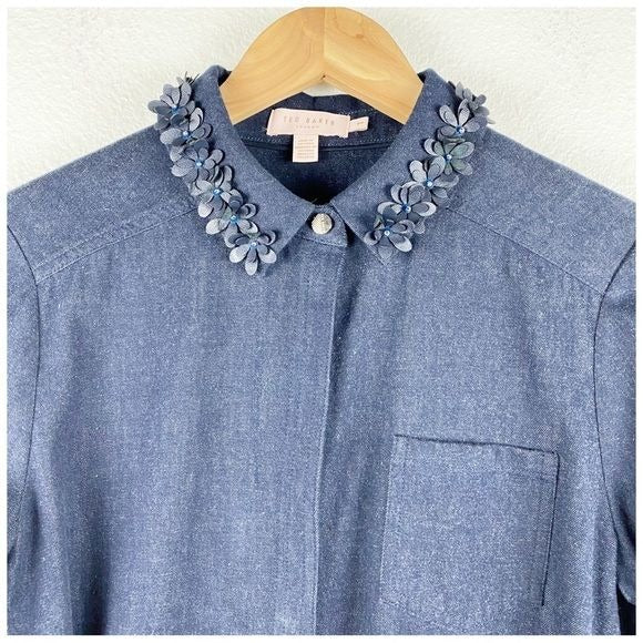 Ted Baker Denim Floral Applique Dress Size 1/Small