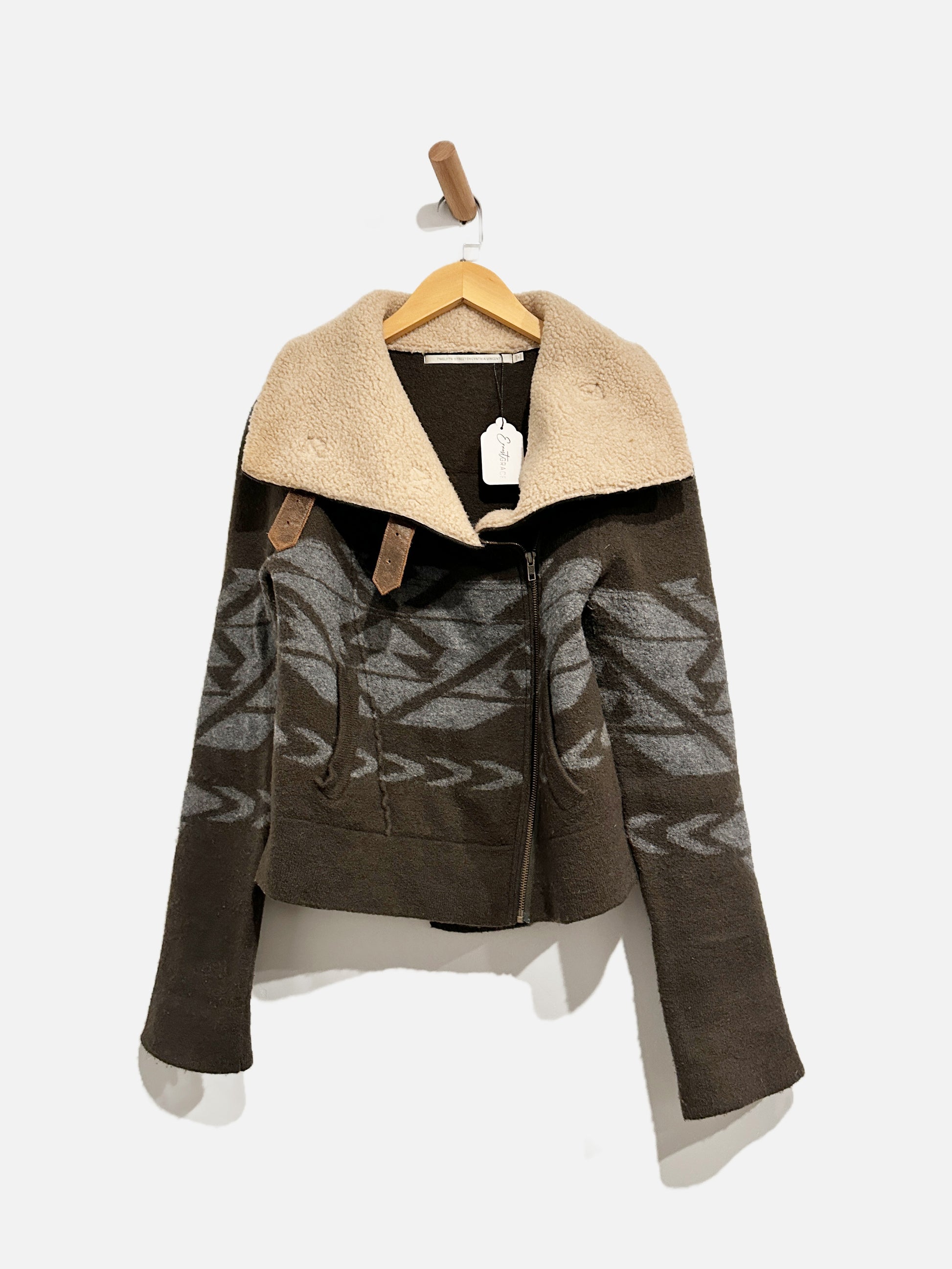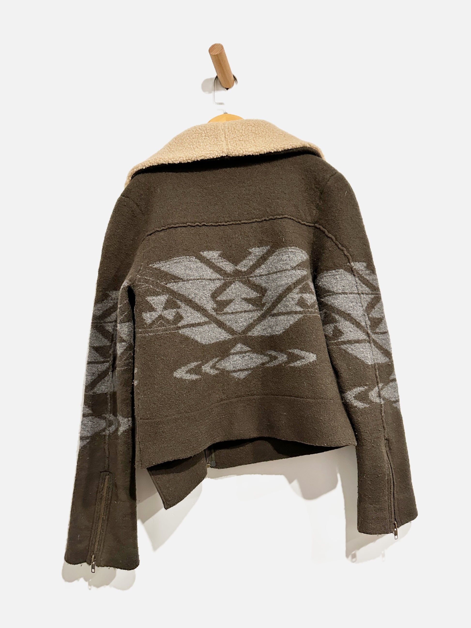 Twelfth Street by Cynthia Vincent Green Aztec Wool Shearling Coat - Large