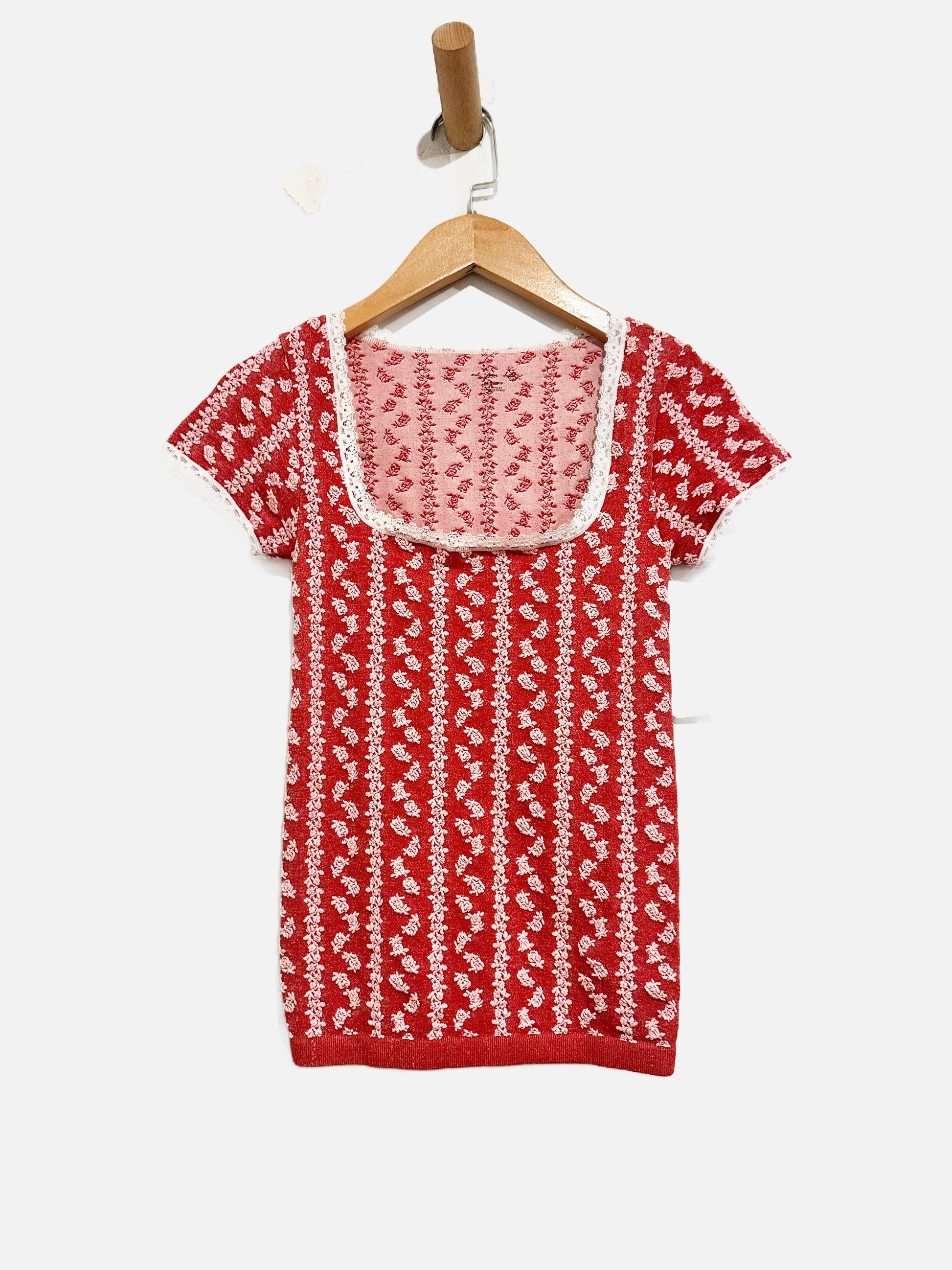 UO Out From Under Red and Pink Floral Square Neck Tee - XS/S