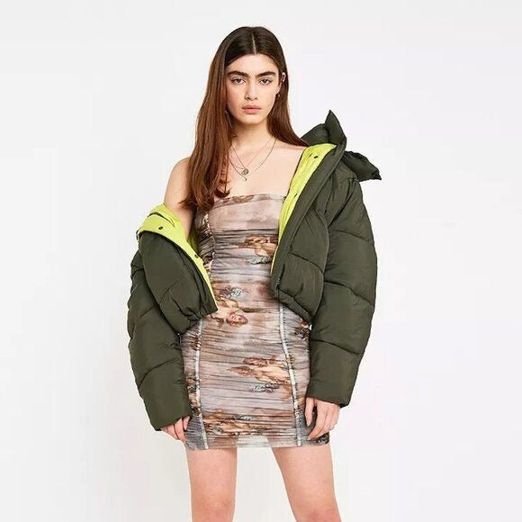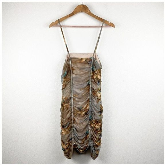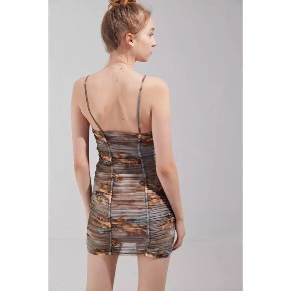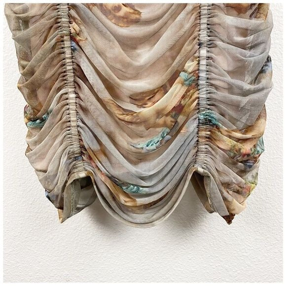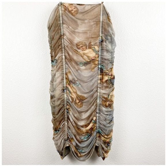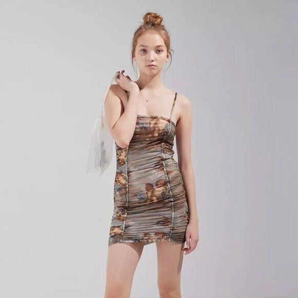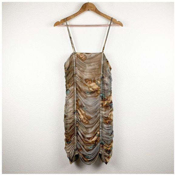 Urban Outfitters Cherub Print Ruched Mesh Mini Dress Size Medium