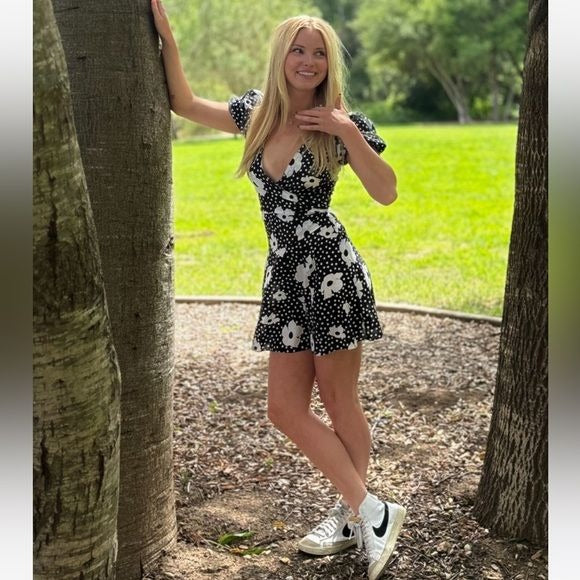 $$ Urban Outfitters Jocelyn Black Floral Wrap Dress Size Small