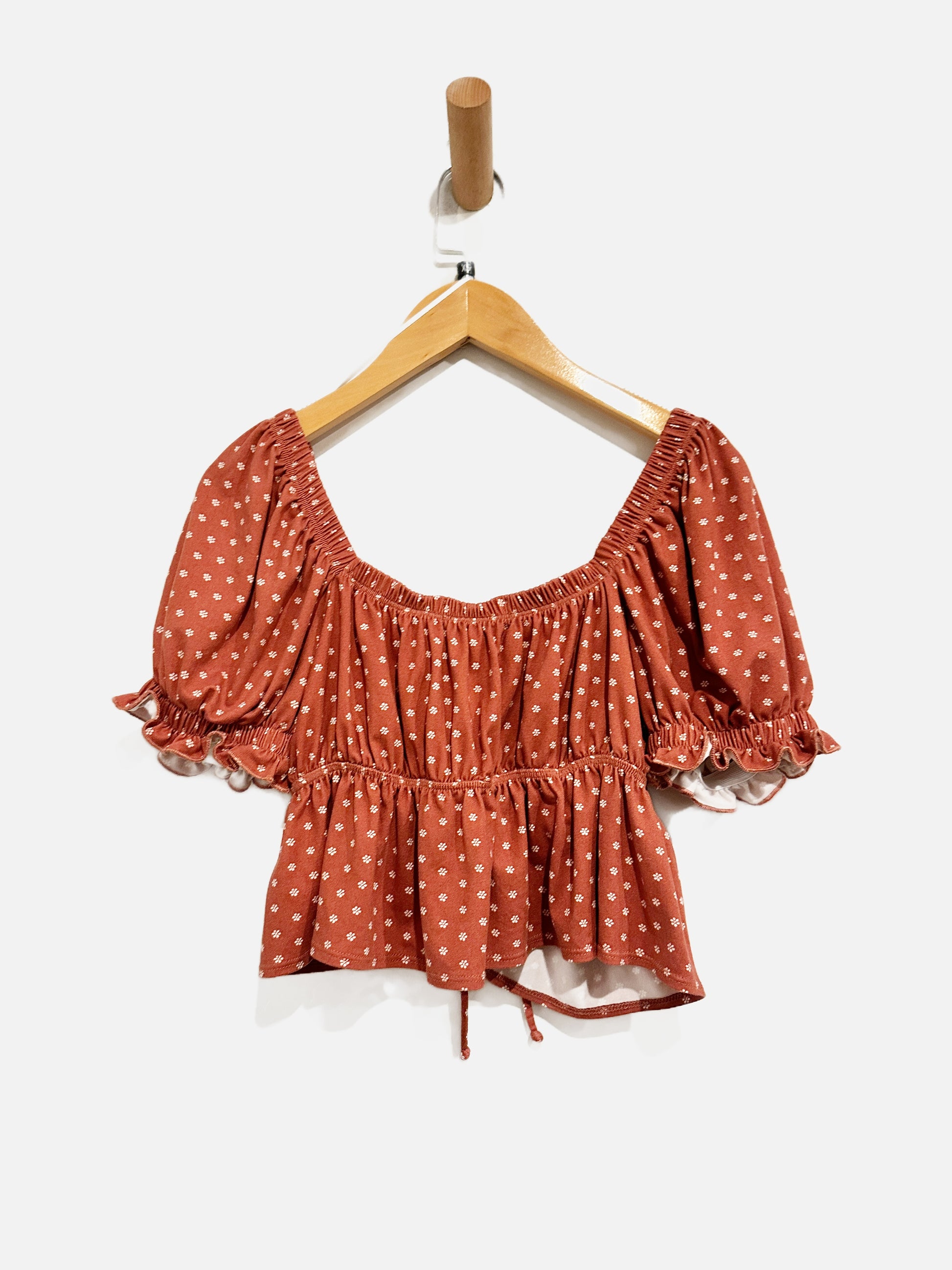 Urban Outfitters Pink and White Floral Tie Front Top - XS