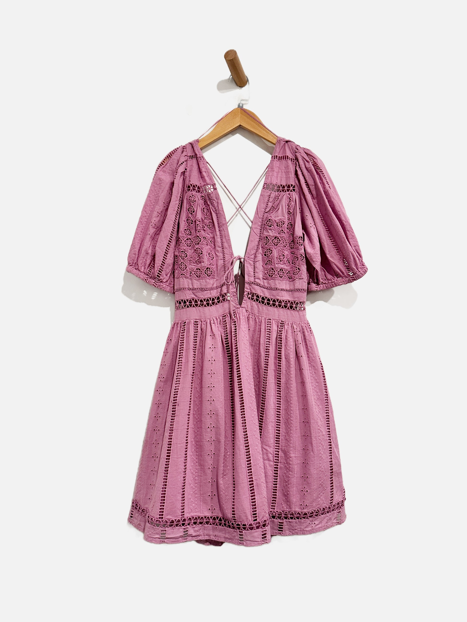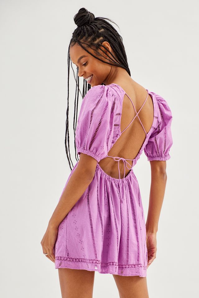 Urban Outfitters Purple Eyelet Mini Dress - Medium