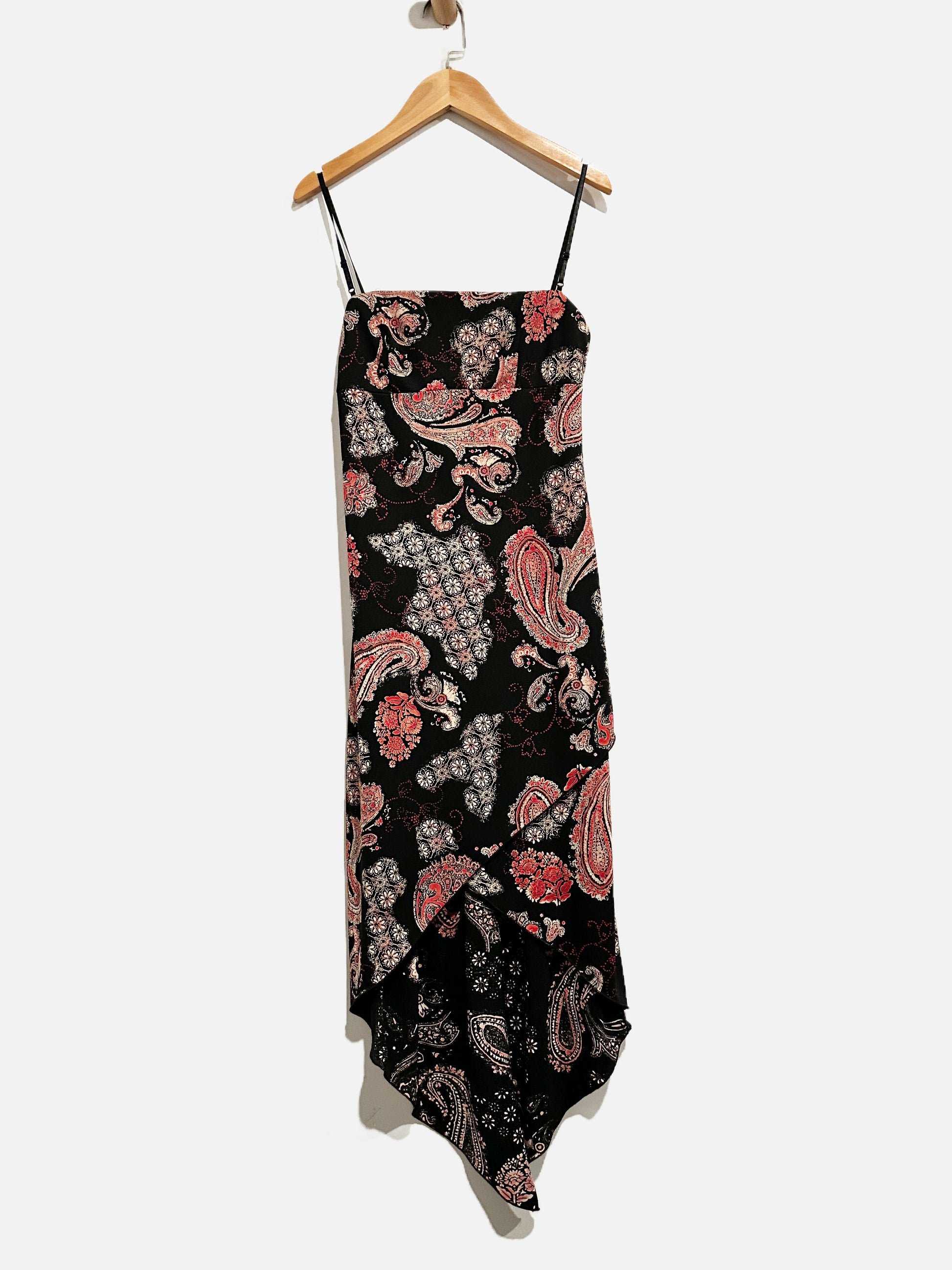 Vintage Y2K City Triangles Black & Red Paisley Dress - Small