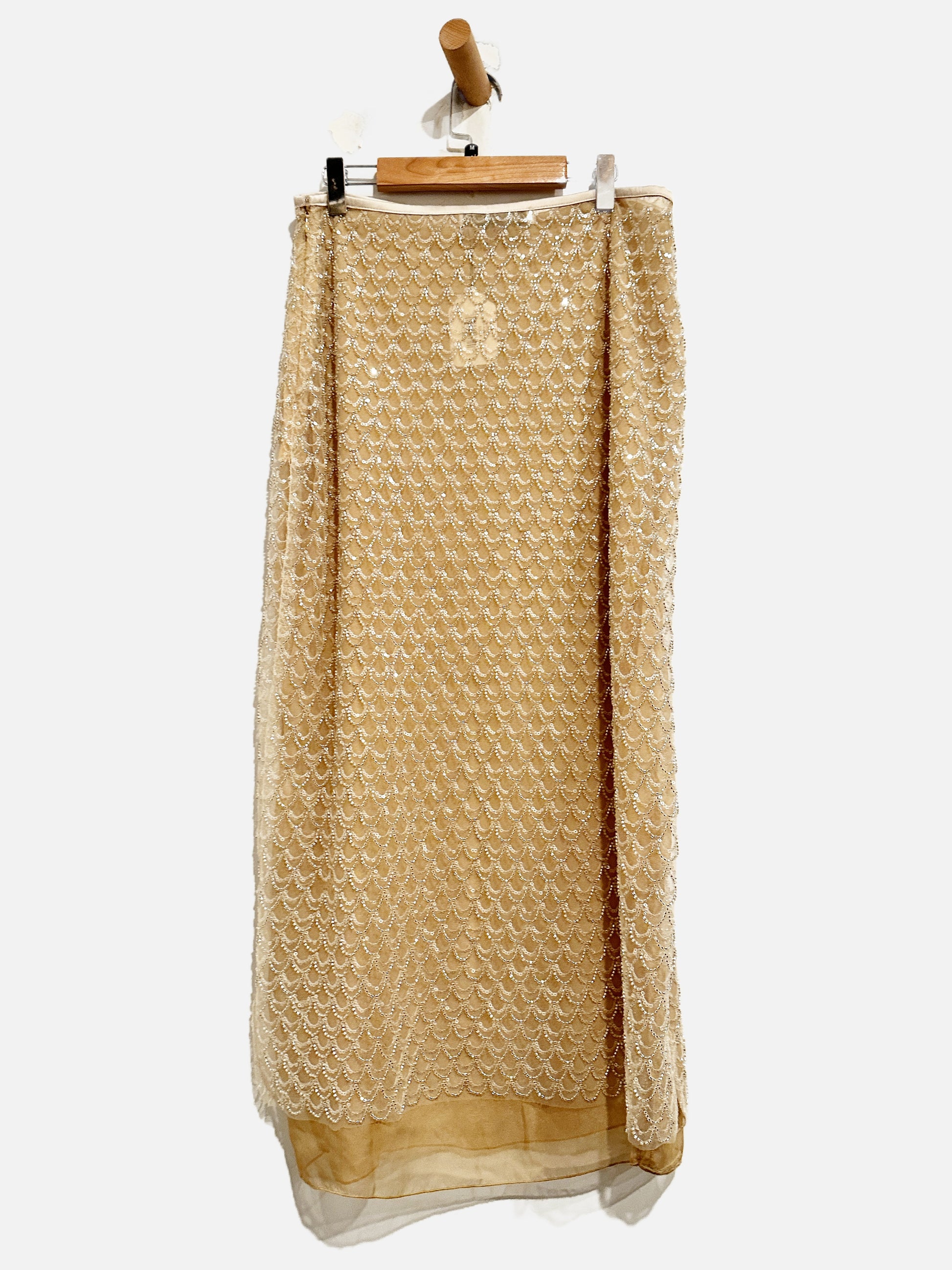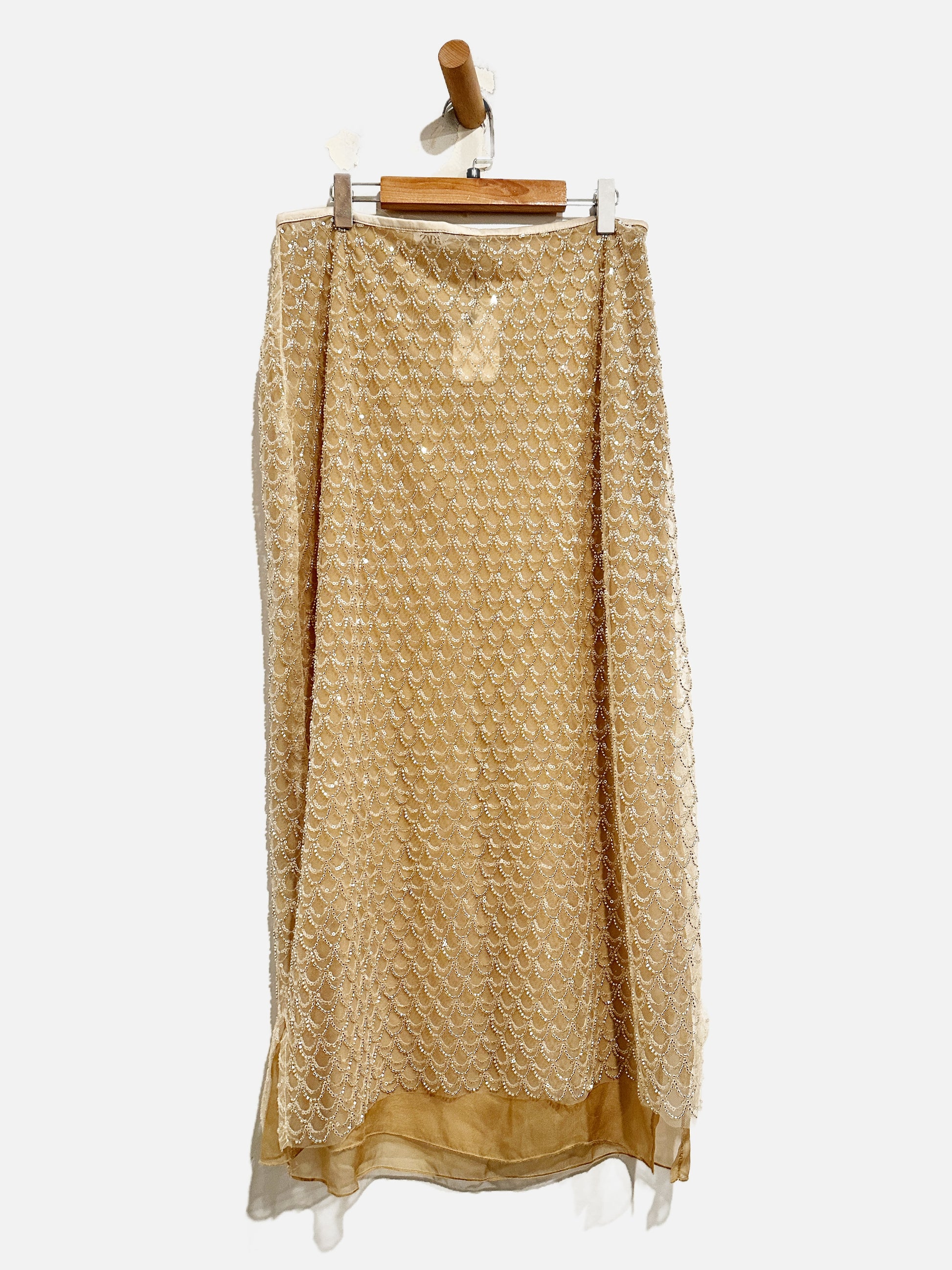 Zara Beige Sequin Beaded Midi Skirt - Medium