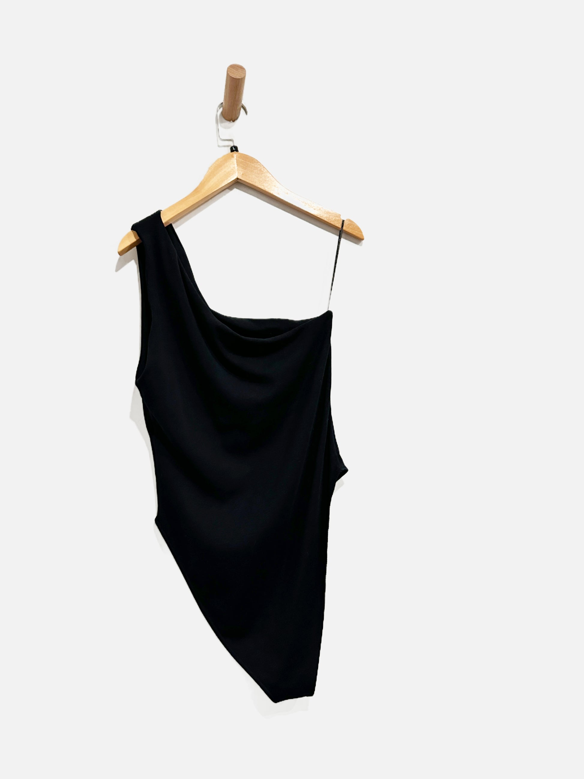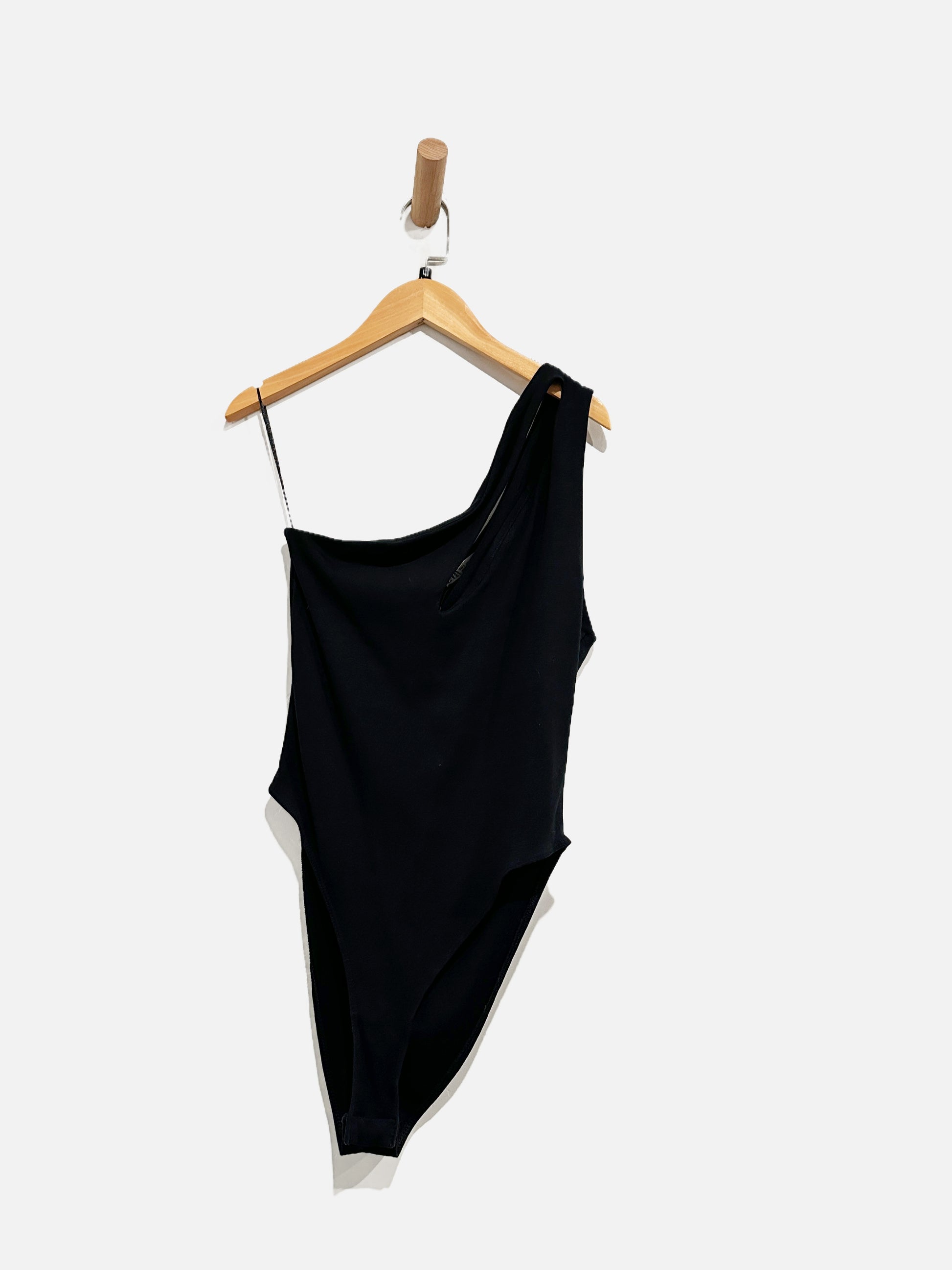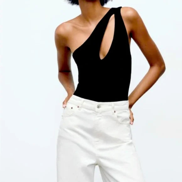 Zara Black One Shoulder Cut Out Bodysuit - Large