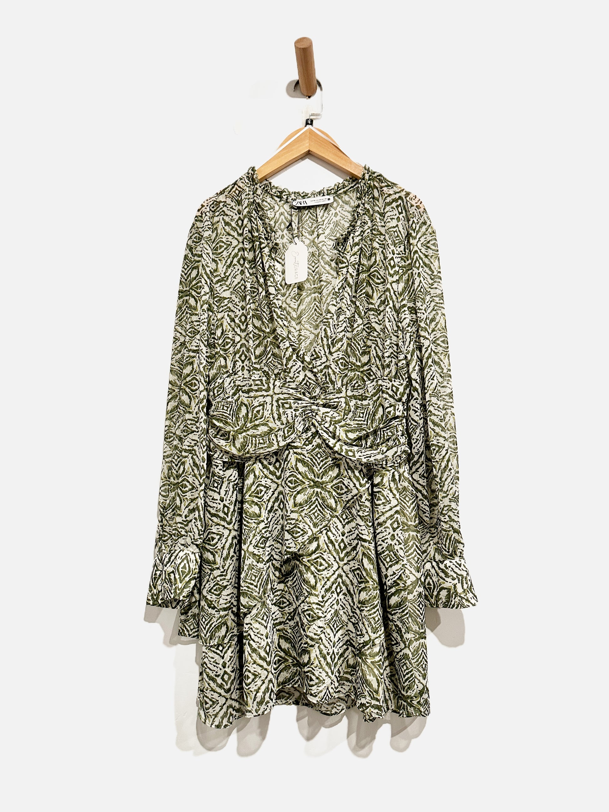 Zara Green Printed LS Dress - Medium
