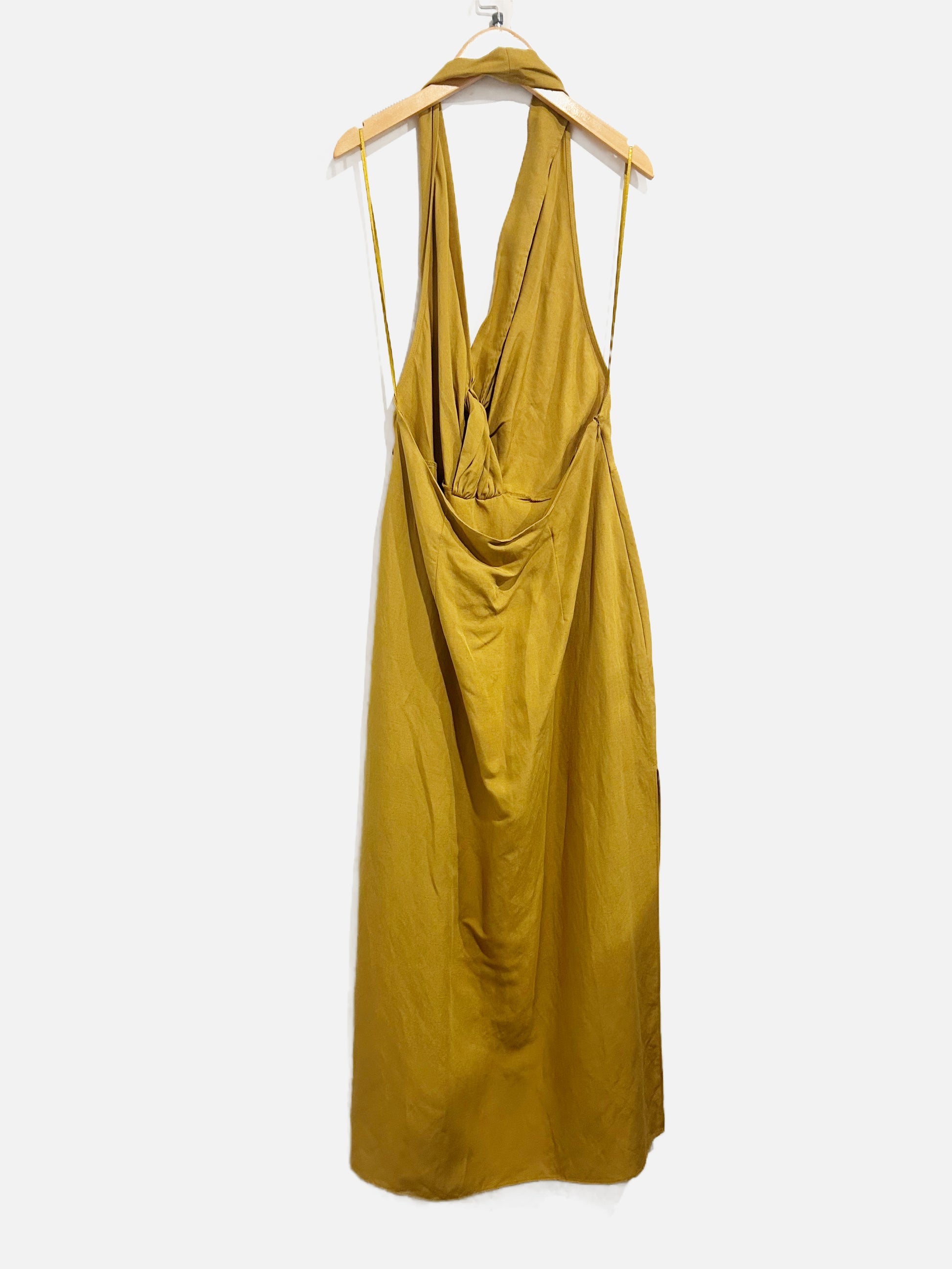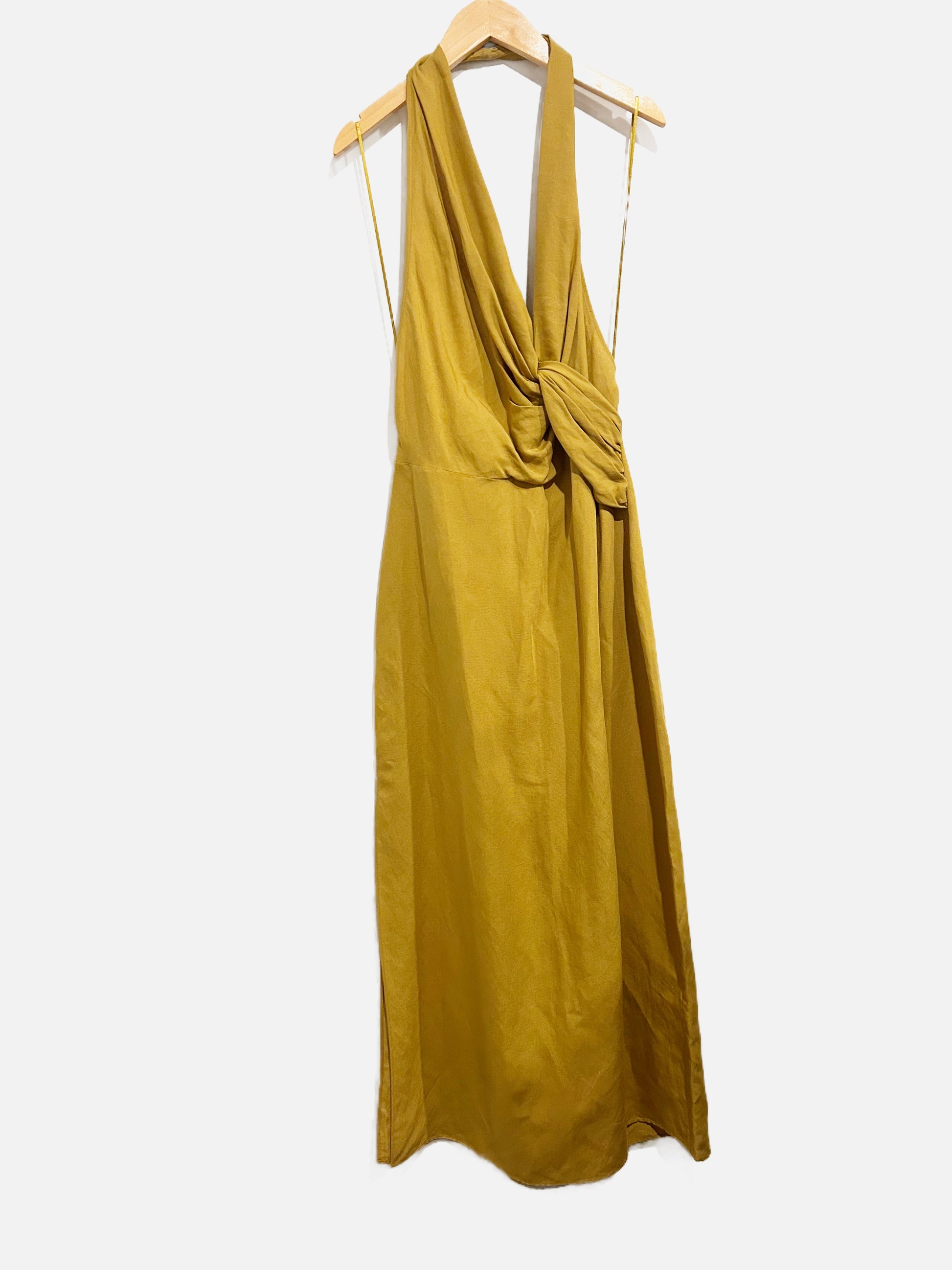 Zara Mustard Yellow Linen Halter Midi Dress - Large