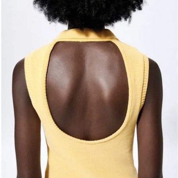 NWT Zara Yellow Knit Polo Dress with Cutwork Detail Size Small