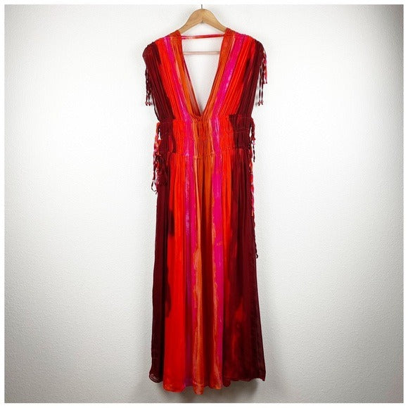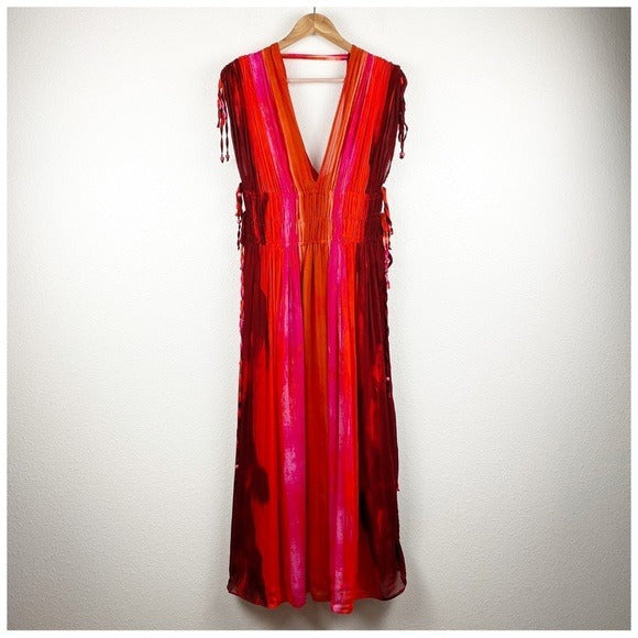 Zara Sleeveless V-Neck Beaded Appliques Tie Dye Midi Dress Size Medium