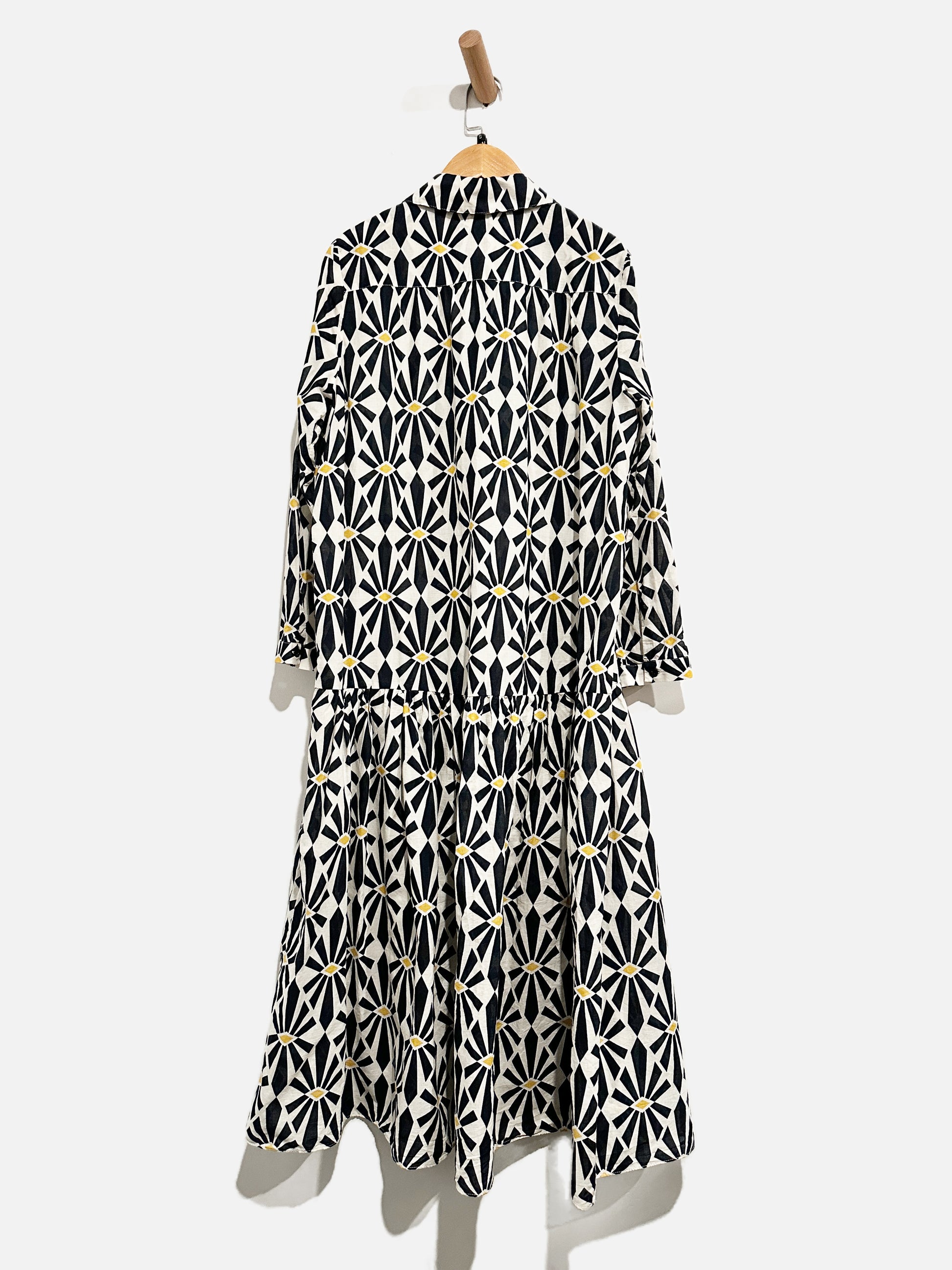 Zara White/Navy/Yellow Printed Midi Dress - Small