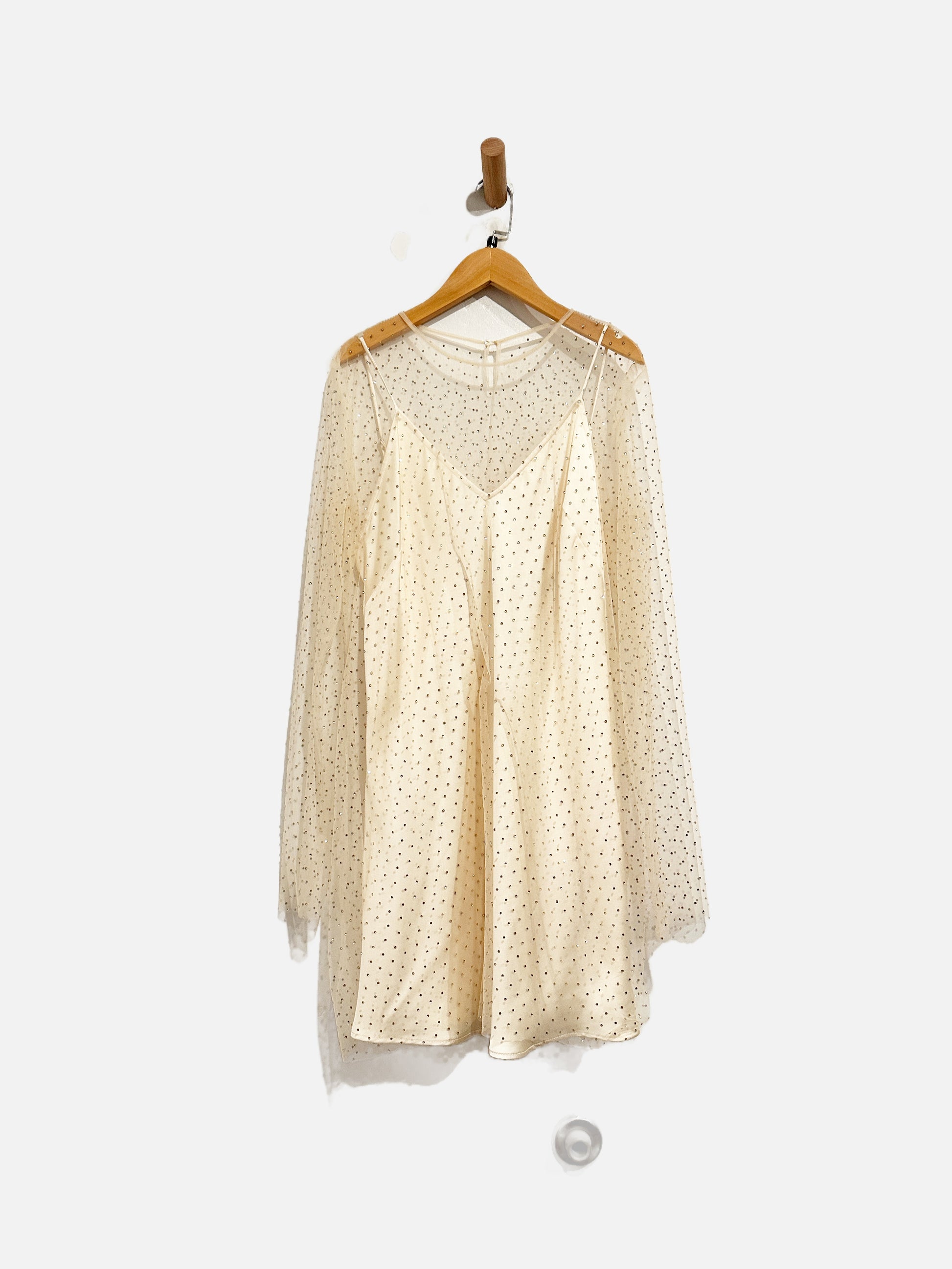 Zara White Rhinestone Sheer Mini Dress - Large