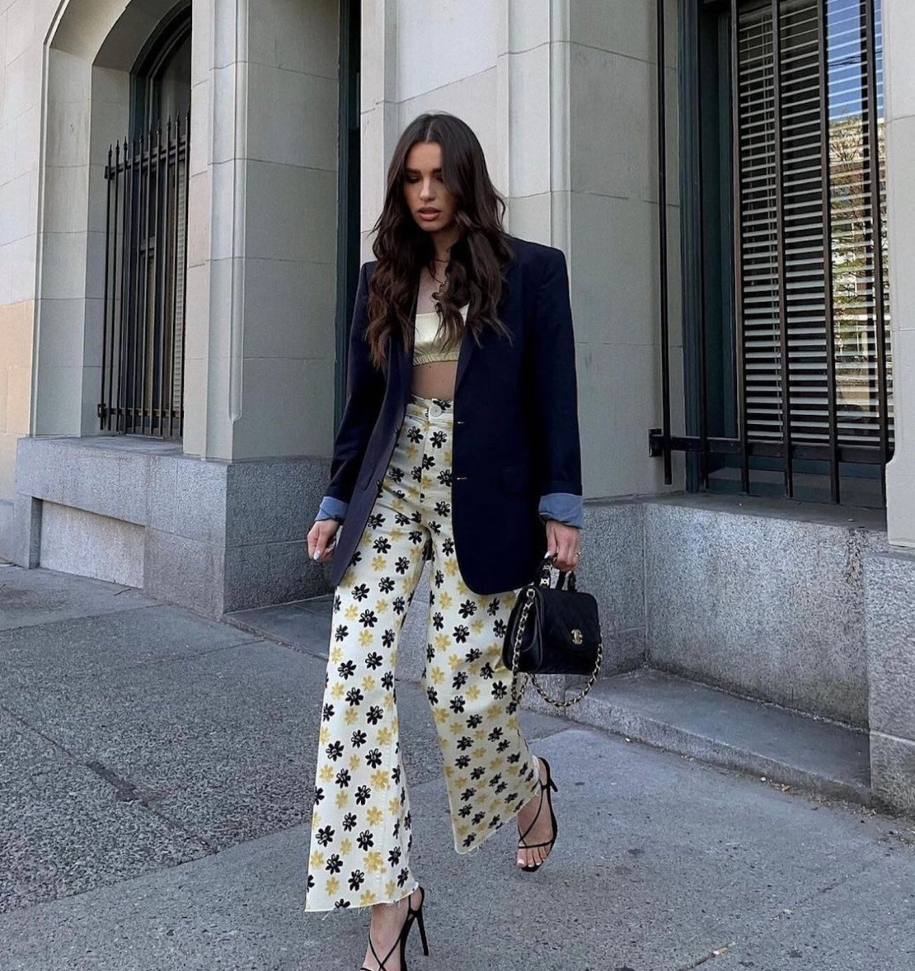 Zara Yellow and Black Floral Wide Leg Pants - 4
